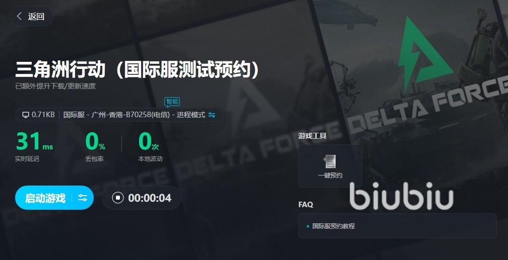 新注册的用户在登陆后可得24小时的加速,这能让尚未体验过三角洲行动的朋友们先享受一次加速机会。同时所有用户都可使用【biubiu不掉线】来额外获取一次为期三天的免费加速,作为新用户来说两者叠加就能得到96小时的加速了。