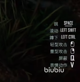 首先是WASD上下左右,作为移动方向键几乎所有游戏都一样。攻击的话就是鼠标的左右键,而左Ctrl键是蹲伏,左Shift键则是进行翻滚,也就是相当于动作游戏里的闪避,空格键则是进行跳跃。
