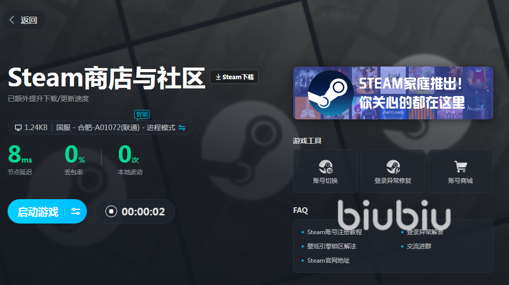 biubiu凭借其卓越的加速技术和全球优质节点覆盖,能够智能选择最佳路径,降低网络延迟和丢包率。同时它还具备简单易用的界面和一键加速的功能,让玩家们能够轻松解决网络问题,畅享游戏所带来的快乐。此外我们还能够提高500%游戏下载的速度,还是非常有效的。