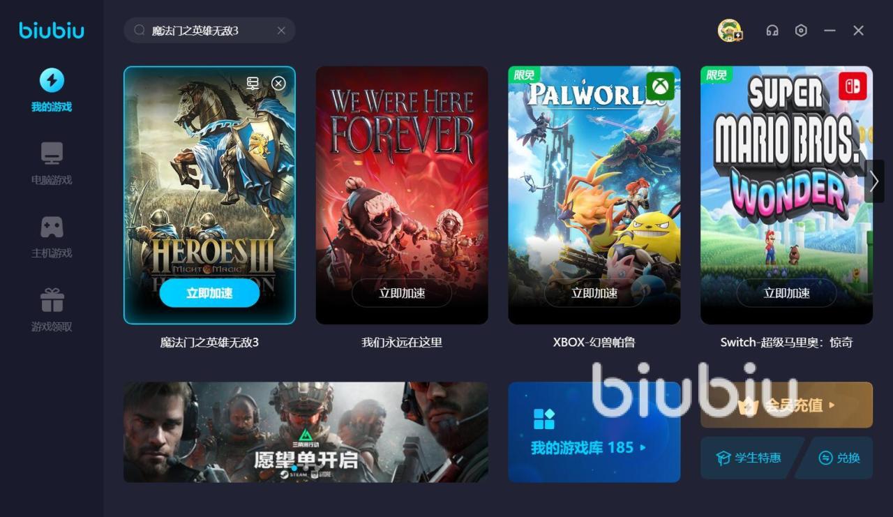 平台上线了多个福利活动,无论你是新用户还是老用户,只要输入兑换码【biubiu不卡顿】就能领到3天的免费加速时长,此外,新用户完成注册后,就能领到24小时的加速时长。