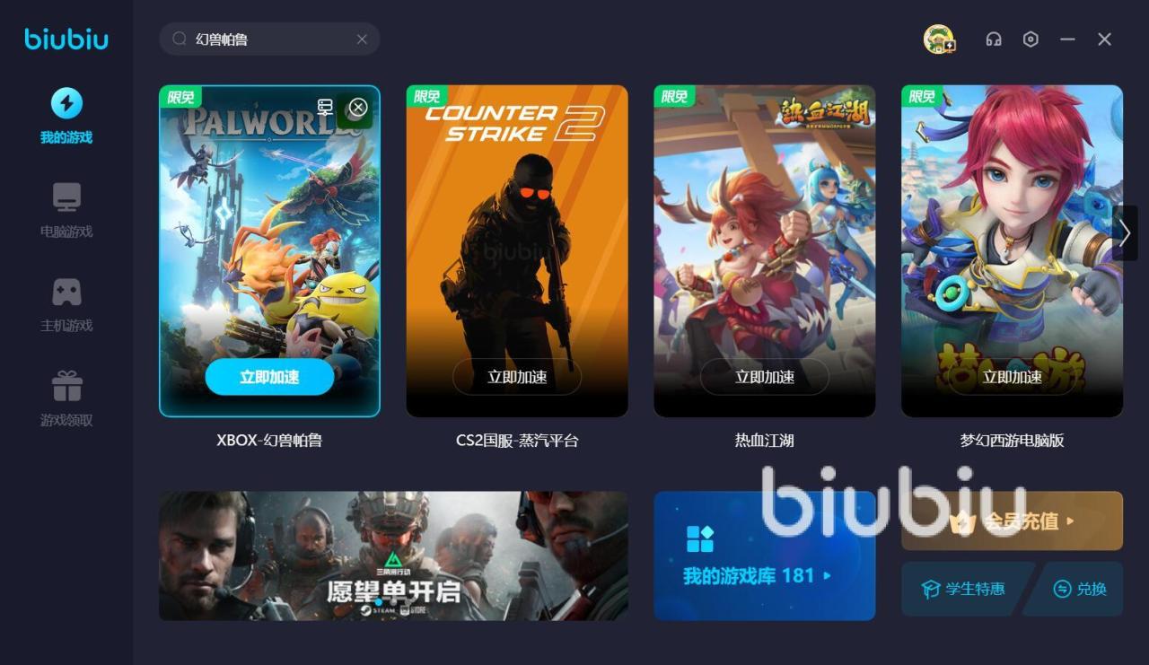 在进行多人联机时,多名玩家同时挤在一个服务器上面,很容易造成网络拥堵,进而影响在游戏内的操作,严重的时候还会造成游戏崩溃或者存档丢失。如果想要避免这种情况发生,那么可以使用biubiu加速器内的加速服务去维持网络的稳定,让其始终保持畅通。所有用户在输入兑换码【biubiu不卡顿】之后,都能领到3天的免费加速时长,如果是新用户的话,那么完成注册就能领到24小时的加速时长。