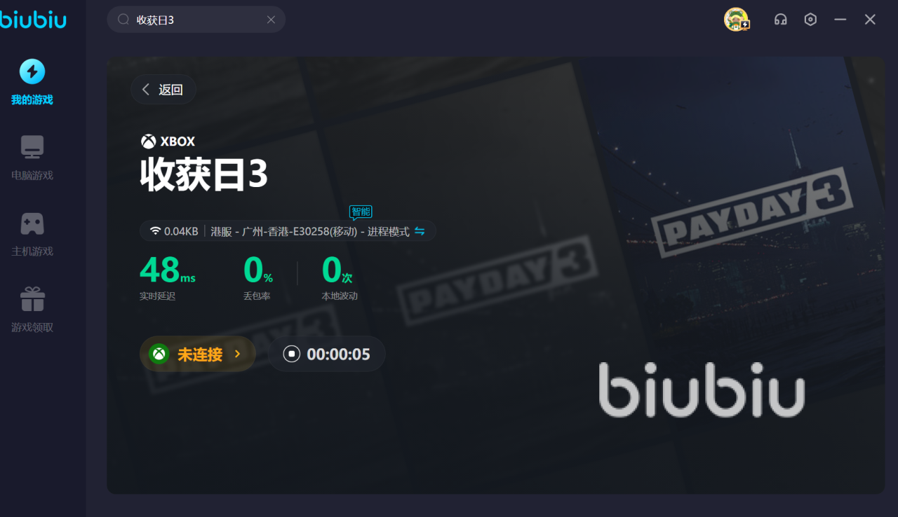 收获日3玩家将三人进行小队到都市内进行夺宝任务,而在任务的过程中不可以太过冒险,很容易受到都市内的警备威胁,这样还没有进入夺宝的地点就有可能全部被歼灭,因此需要搭配其他的队友踩点才获得游戏的胜利,而有些玩家由于网络实在太卡,导致游玩体验很差,几乎很容易让队友造成一个人要分担很多的活,让队友不想要跟自己组队了,而为了避免这种情况就可以使用biubiu加速器,并且新人在注册后便获24小时免费加速,以及新老用户使用兑换码【biubiu不卡顿】可获3天免费的使用权哦!