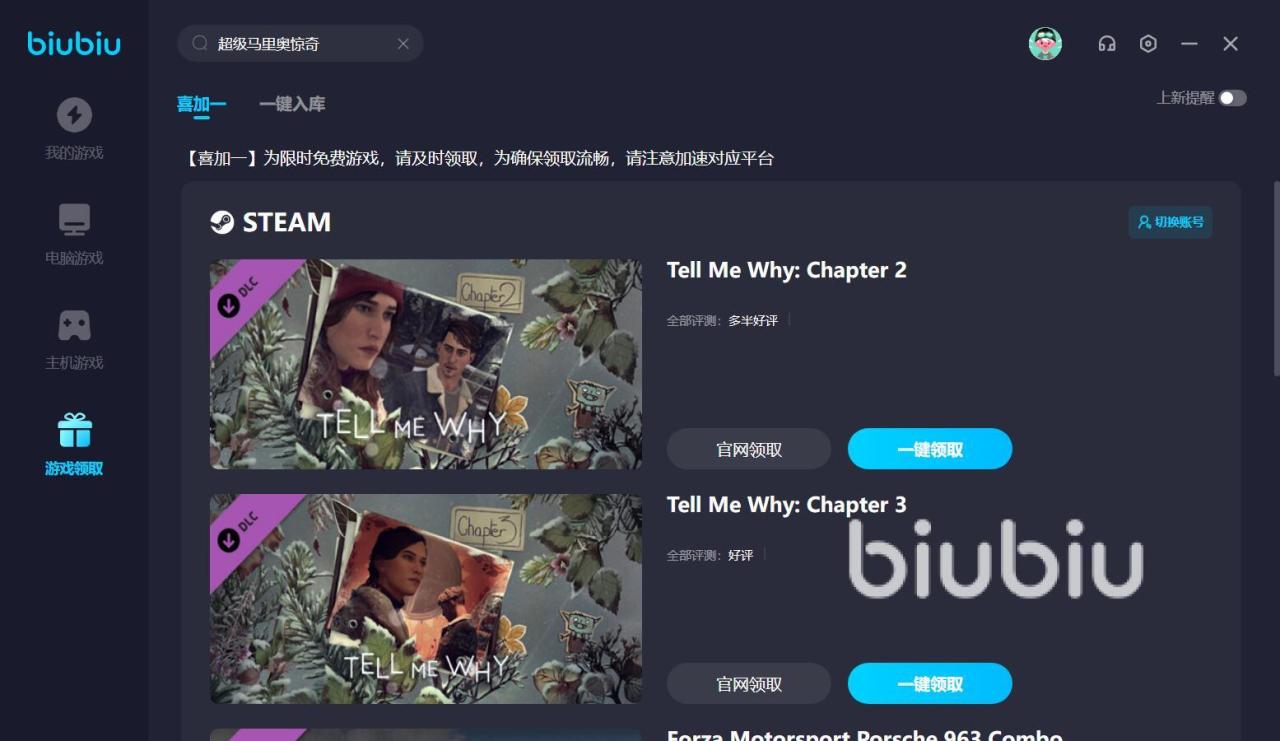 一些游戏商店为了吸引用户,会免费赠送许多经典游戏,为了方便大家去进行领取,平台会及时收集相关的福利信息,并罗列在对应的界面中,大家可以在这里一键进行领取,如果你设置了上新提醒,那么有新游戏可以领的时候,应用就会立刻通知你。