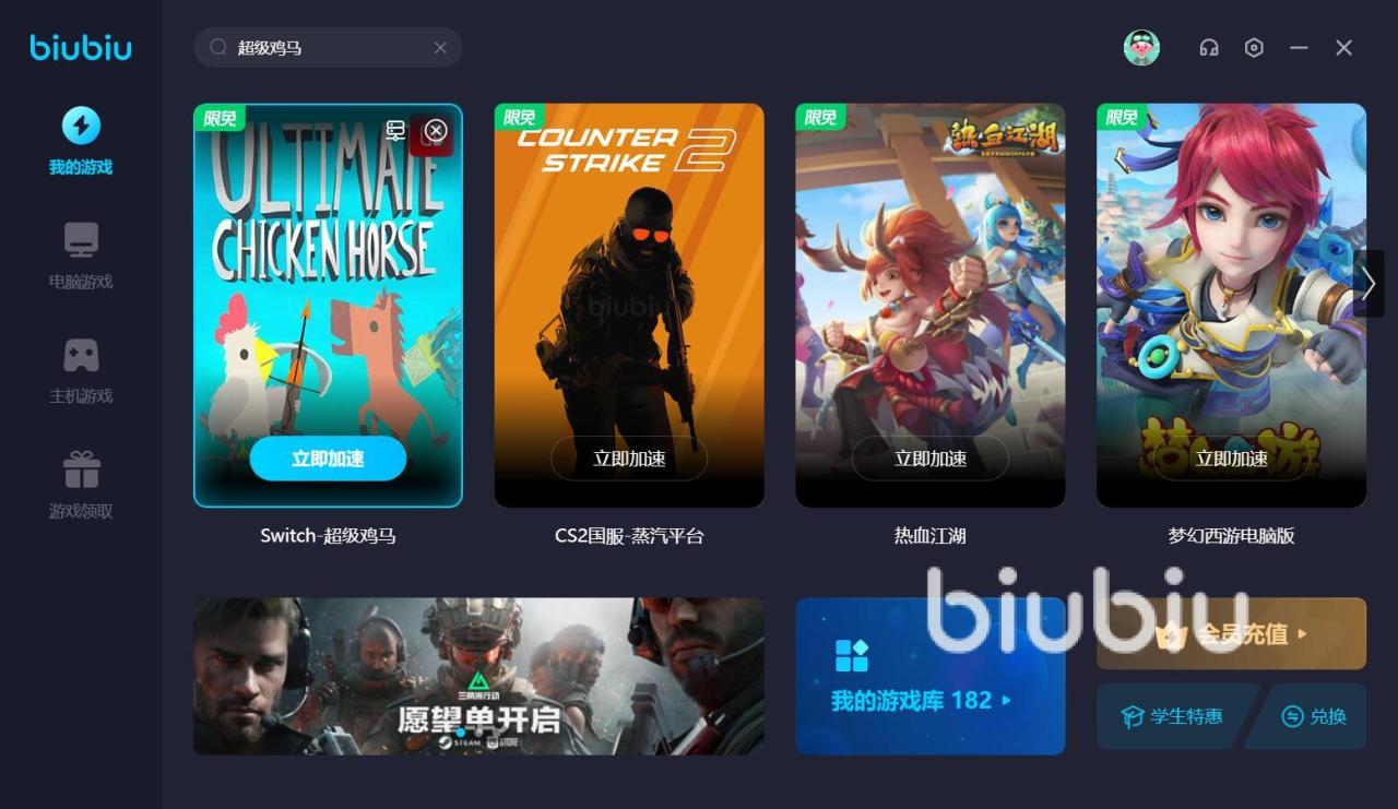 在进行实时对抗的过程中,你可以设置陷阱去延缓对方,对面也会想方设法阻碍你前进,期间,稍有不慎就会输掉比赛。如果你不想在比拼的过程中被网络拖累,那么可以借助biubiu加速器内的网络优化服务,去维持一个稳定的游戏环境。平台内最近推出了好几个福利满满的活动,如果你是新用户的话,那么注册就能领到24小时免费加速时长,此外,所有用户在输入专属兑换码【biubiu不卡顿】之后,都可以领到3天的免费加速时长,之后你就能在加速状态下,去畅玩各类游戏大作了。