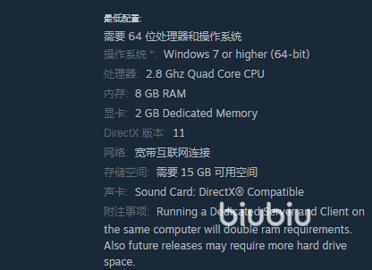 如果想要以最低特效游玩的话,那就得满足64位Windows7或者更高的系统,CPU则得满足2.8Ghz及以上的,运行内存要达到8GB,而显卡只需要是具备2GB显存的独显即可,而硬盘空间则要15GB,只要满足以上意见的要求,那我们就能上号游玩了。
