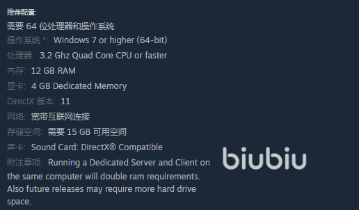 如果大家对于游戏画面有一定追求的话, 那就得升级部分硬件,比如CPU要升级到3.2Ghz或者更快的,显卡满足4GB显存的独显,而运行的内存则要达到12GB,这样我们就能够以中高特效进行游玩的,而这些硬件对于现在的电脑来说也就是中低配电脑,因此大家想要流畅游玩还是比较容易的。