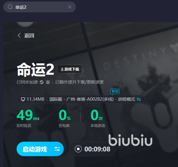 命运2游戏节奏特别的快,在对局内你没法和自己的队友一直打字去沟通,最多的还是得靠语音,但因为它不是国内的服务器,要是想正常聊天和解决高延迟的话,就得在游戏之前打开biubiu加速器,定位搜索到这款游戏,输入名字就可以,方法再简单不过,同时还能看到它不同的几个端口,很多都是面向主机的。