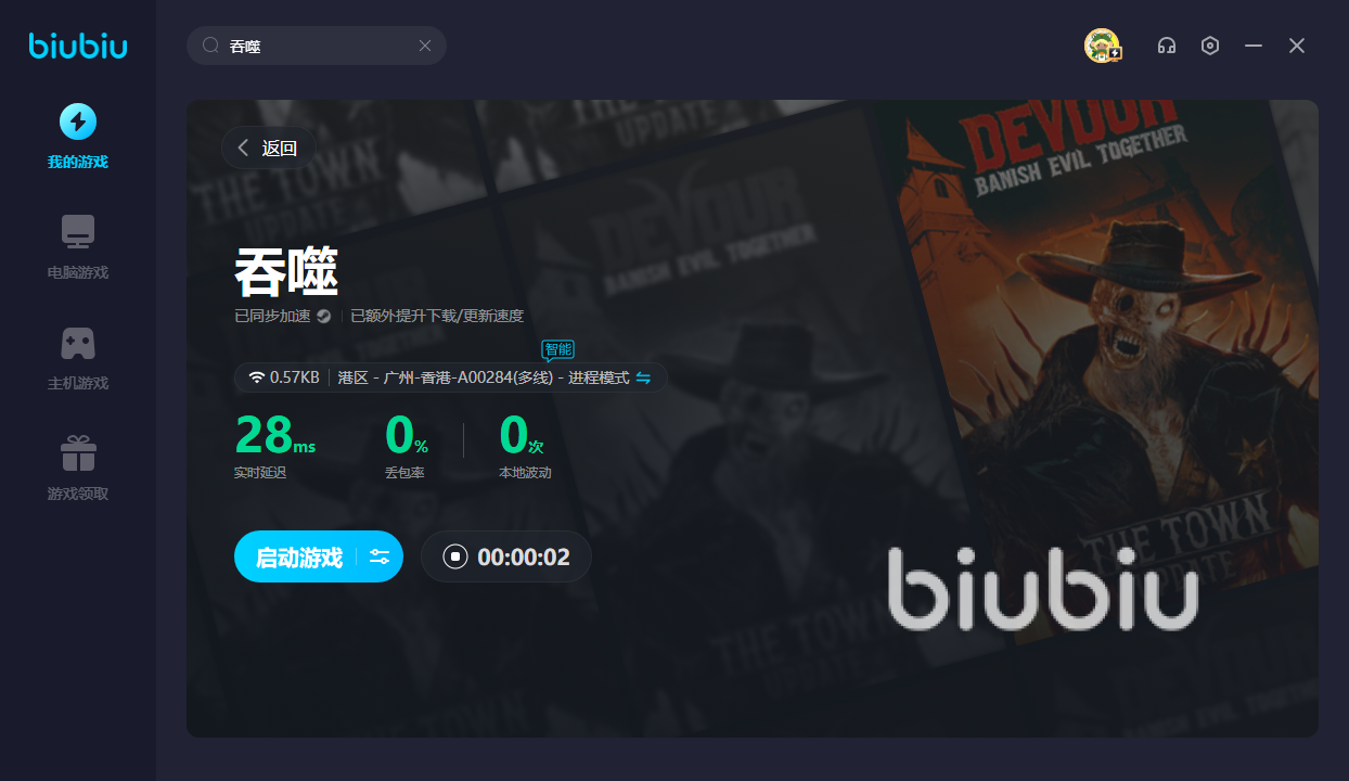 由于吞噬现在暂且没有国服,为了成功潜入其他区服的恐怖世界。宝子们就得善于利用biubiu,一番提速过后便可开启传送阵,让你真正地成为新手驱魔人。若是打算先玩一波的话,新人可获得24H的免费加速;此外新老用户都能输入【biubiu不卡顿】,即可畅享三天免费加速。如果卡顿的话,就无法逃离鬼怪的袭击。有了加速器后,方能解决卡顿,让你争取更多喘息的空间,并趁机快速发育。
