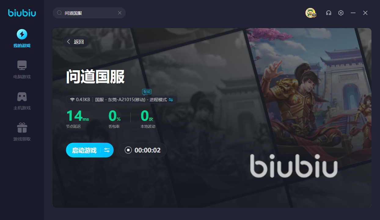 问道国服中的场景以及画面都令人感到十分震撼,每一帧都是大作。但是网络不好就不能享受这种画质,有了biubiu加速后。让你轻松享受高画质画面,若是想体验一番。新用户可领取24H的免费加速,让你瞅瞅这种近乎妖孽的加速效果。此外,新老用户均可输入【biubiu不卡顿】,即可领取三天免费加速,让你畅玩更长时间。若是战斗途中卡顿的话,那么便只能站着挨打。有了加速器后,便可进行快速战斗,让你先发制人更加给力!