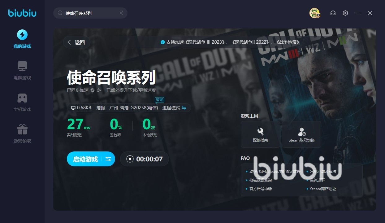 2024年06月24日 11:37 来源:破军心赤丸使命召唤无疑是玩家们游戏生涯中的一段难忘经历。然而,在探索这款游戏世界的旅程中,不少玩家都遭遇过卡顿、闪退和登录困难等令人沮丧的问题。今天小编就为大家带来使命召唤系列卡顿解决方法,相信面对这些困扰许多玩家都在寻求解决方案。经过深入研究和测试,小编发现一个高效的加速器——biubiu加速器,正是解决这些问题的关键。