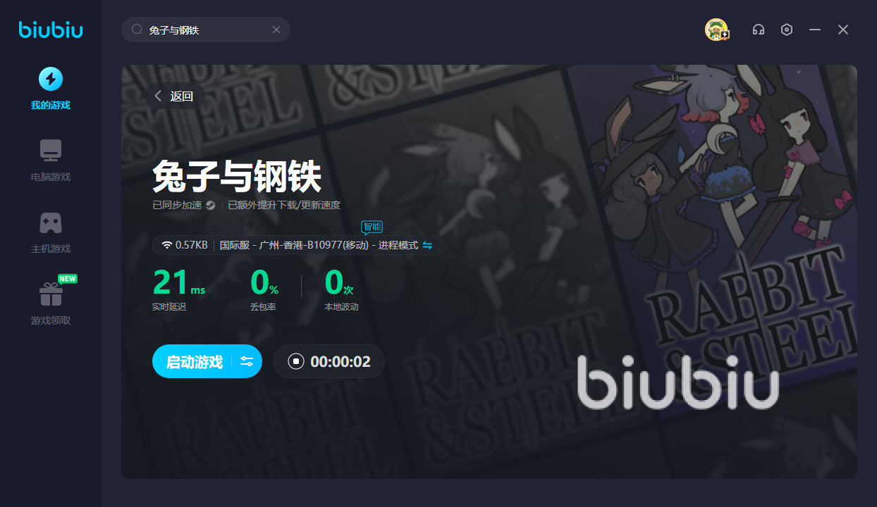 如果游戏延迟高的话,遇到一些需要精妙操作才能躲开的危机,就无法闪避了。有了biubiu后,便可解决高延迟问题,让你按照自己的心意操纵人物,轻松躲开技能。由于兔子与钢铁是肉鸽游戏,玩到一半闪退,下次打开就要从一开始的地方玩起。使用加速器后,网络会变得极其稳定,让你玩到最后一刻通关时也不会掉线。不过玩腻的话也可以选择暂停,接着打开其他游戏即可继续提速了,让你告别无聊。