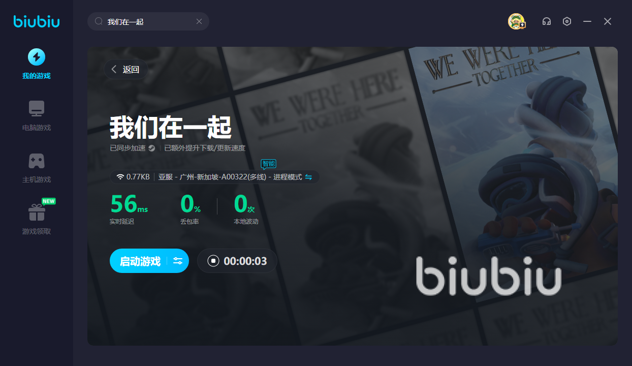 若是大家玩我们在一起时延迟高的话,就不能顺利地从敌人的魔爪下逃生。好在biubiu的加速效果十分良好,可以解决高延迟问题。让你每次都能精准地躲掉敌人的追杀,进而逃出生天。要是玩到一半就掉线的话,那就要重新开始拯救落难的探险家了。好在加速器可以提供安稳的提速效果,避免网络丢包,这样就能一次性做完任务。如果遇到解不开的谜题,亦可前往biubiu论坛寻找相关攻略,即可为你答疑解惑。