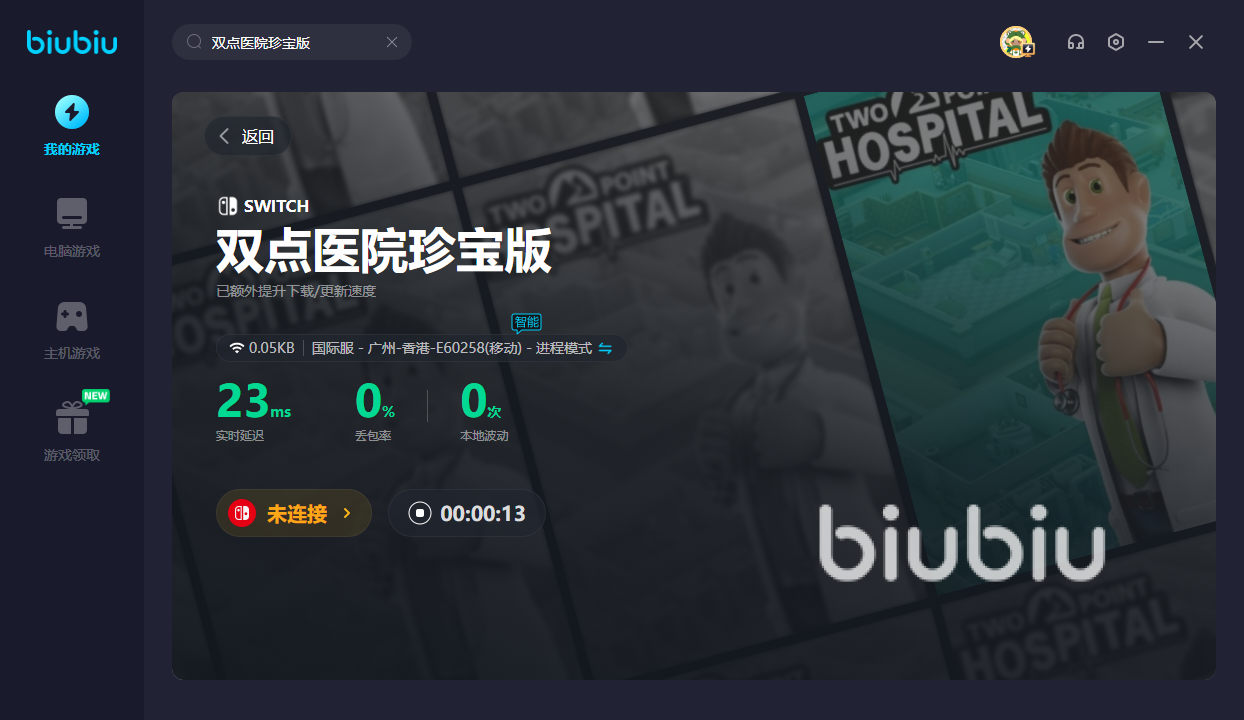 想知道双点医院珍宝版闪退怎么解决?这时仅需要使用biubiu,便可通过良好的网速。让你轻松告别游戏卡顿,从而防止游戏突然闪退。这样才能专心致志地投入你的医疗事业当中,从而让医院可以发扬光大的继续开展下去,避免倒闭。
