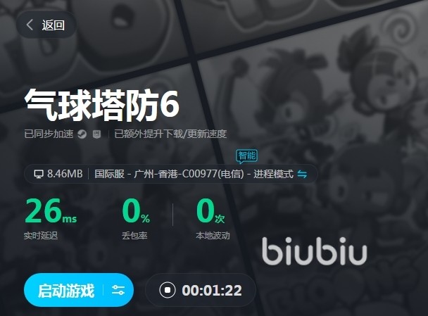 biubiu加速器的效果也是实时可见的,具备智能化的节点切换,如果大家是想从气球塔防6切换到其他游戏,那么也只需点击对应加速按钮那么就会停止加速,这时候就可去针对其他的作品开启加速服务了,简化的操作大大的提高加速效率,此外加速过的游戏会自动保存至本地游戏库,方便日后再次访问,尤其对于找回久未登录的游戏账号来说还算极为有用的。