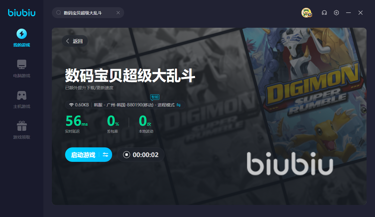 数码宝贝超级大乱斗作为海外知名游戏,如今仍旧没有国服出现。所以为了进入宠物格斗场里面,大家就需要使用biubiu。方可获取优质网络,顺利捕捉数码宝贝并战斗。没玩过的话,新人可领取24H的免费加速试玩一下。另外新老用户都能输入【biubiu不卡顿】,额外兑换三天免费加速,令你的宠物训练之路走得更远。要是中途卡顿的话,那就不能顺利开启你的冒险。所以有了加速器后,才能让你的旅途充满希望,让你踏上训练之路。
