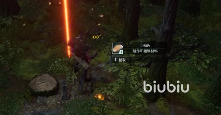 一开始进入游戏时,各位都是手无寸铁的状态,因此就需要去周边的森林里面收集物资,得到石头以及木材等道具之后,就可以制作相应的武器了。