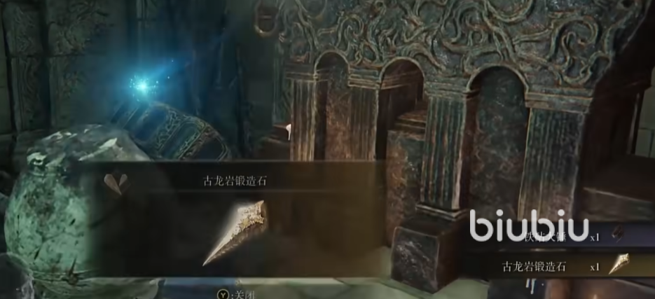 然后往左边走,一路打怪过去,可以捡到不少的锻造石,怪物都打完了,就可以来到最上面的锻造祭坛处。这里是有古龙岩锻造石以及铁砧大锤的,都是不错的道具,收入囊中最好。