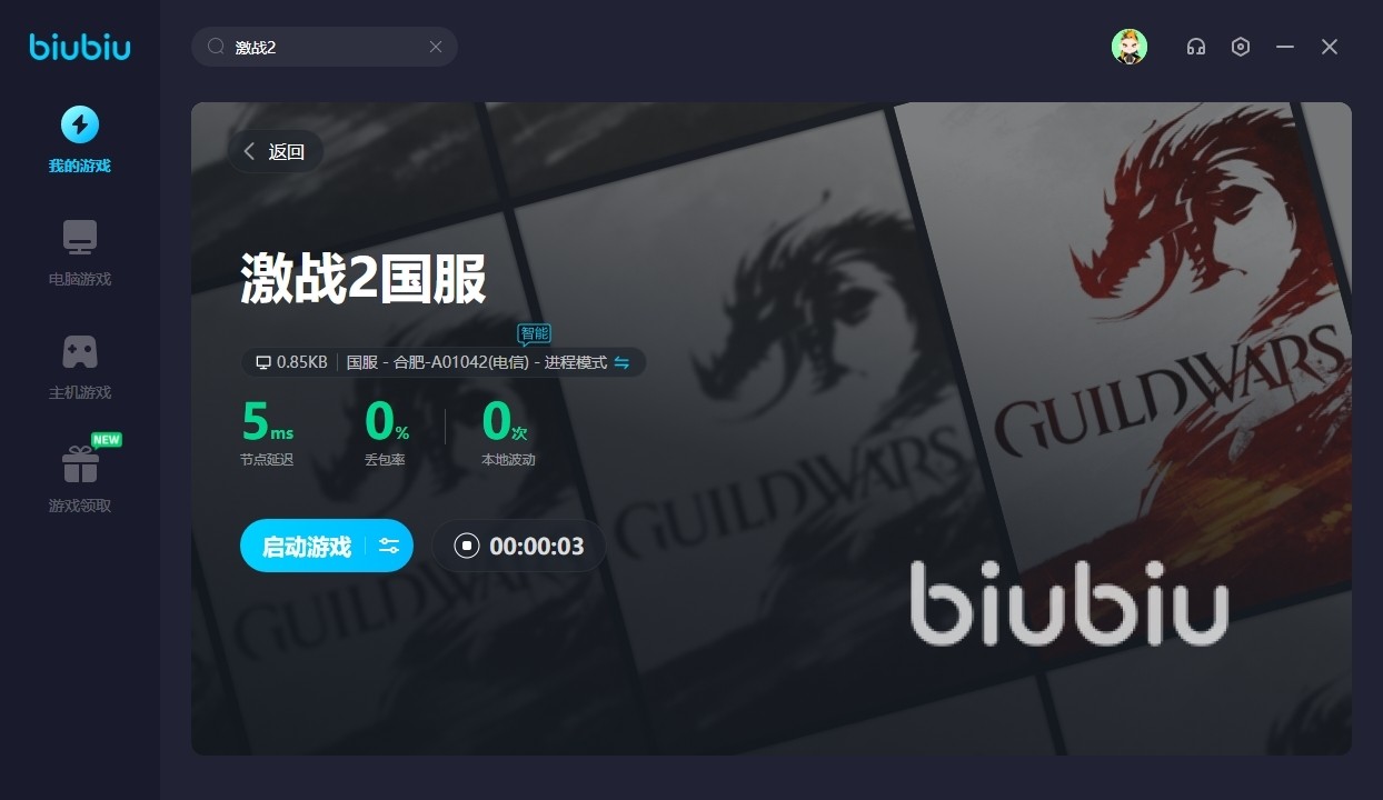 在使用的时候,该应用的便利程度非常高,玩家直接去点击搜索就能见到喜欢的游戏作品,然后就是一键去开启加速,大家也知道目前激战2是有国际服和国服的,而biubiu针对其国服版本更是开放了限免的加速体验,玩家直接去点击就可以了,软件为自动为各位搭载通道。