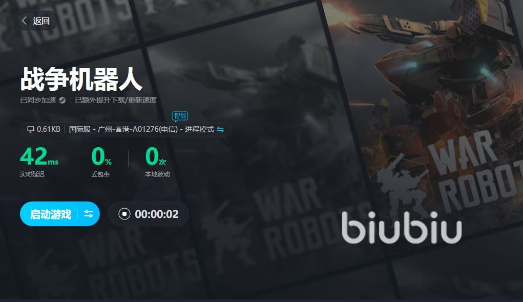 小编推荐的biubiu加速器,使用过的小伙伴,都会惊叹于它的表现。各位喜欢玩战争机器人的小伙伴,千万不要错过这个好用的加速器哦,用它解决了卡顿问题,就不用担心对战的时候出现延时,可以战斗到尽兴为止,最大程度的感受到游戏的乐趣。