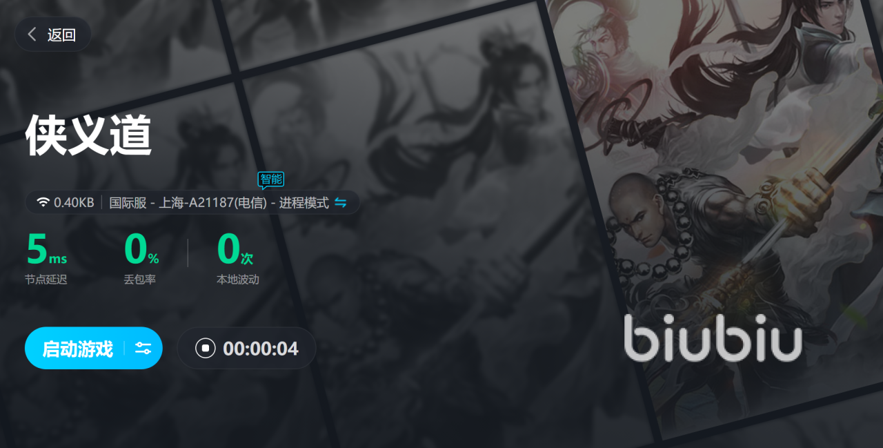 总的来说,该游戏凭借其独特的玩法系统,给玩家带来了一个丰富精彩的武侠世界,让各位可以在这里切实享受到传统的武侠魅力,同时,也是为了大家可以获得更加优质的游戏体验,小编带来了这一biubiu加速器的推荐,使用它去为游戏进行提前加速即可,那么小编关于侠义道卡顿如何解决就先完毕啦!