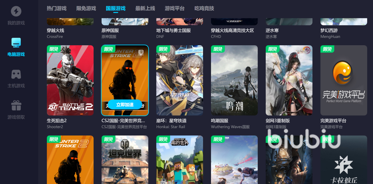 用户在体验biubiu加速器的时候,如果遇到什么无法解决的问题的话,可以向左上方耳机标志的客服进行反馈,若是搜索不到自己想玩的游戏,则可以去告诉biu仔。事实上,软件的游戏库中有着大量游戏,而且支持多端游戏加速,无论是PC端、Steam端、PS端等等,最重要的是目前PC端国服、XBOX端、Steam端的部分游戏还有限免加速活动,大家可不要错过咯!