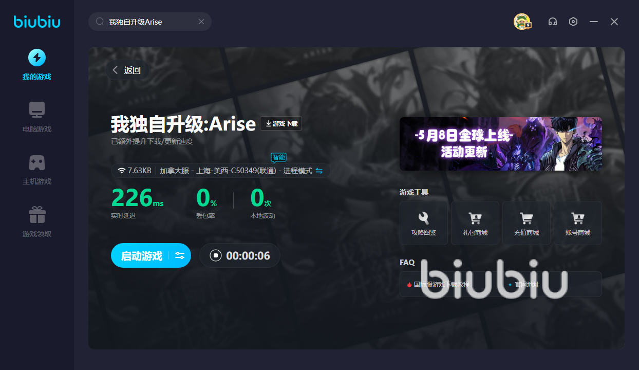 如果在进入地下城之后,大家发现我独自升级Arise卡顿怎么办?为了避免刷怪的途中突然卡顿,大家最好使用biubiu。有了他的帮助下,即可畅快加速。获得稳定流畅的网络后,才有机会一一解决各种难以战胜的地下城怪物。