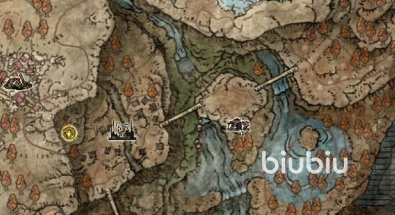 玩家先来到波尼村这个赐福点,后面的路程走起来就会近很多了。传送过来就一直往右边走,可以看到在一个类似于湖心小岛的地形上面,有个屋子的图标。
