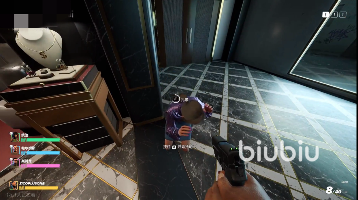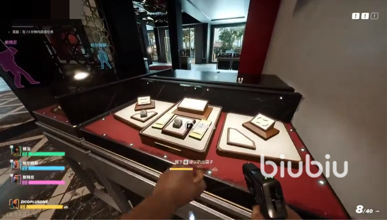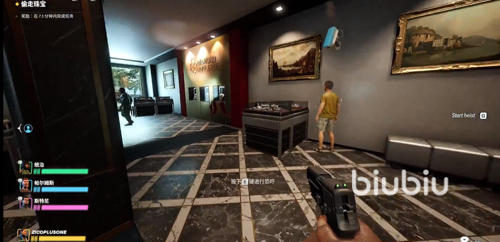 任务“珠宝盗窃案”是一个多人任务,小伙伴们可以选择和朋友联机,也可以选择使用ai队友。游戏任务目标很简单,撬锁带走珠宝即可。不过需要注意的是,房间里设有许多监控,在大厅位置只要不进行违法操作,监控就不会报警,但是在进入私人区域后,被监控拍到则会立即向警方报告,因此小编建议大家一开局就去对监控进行破坏。