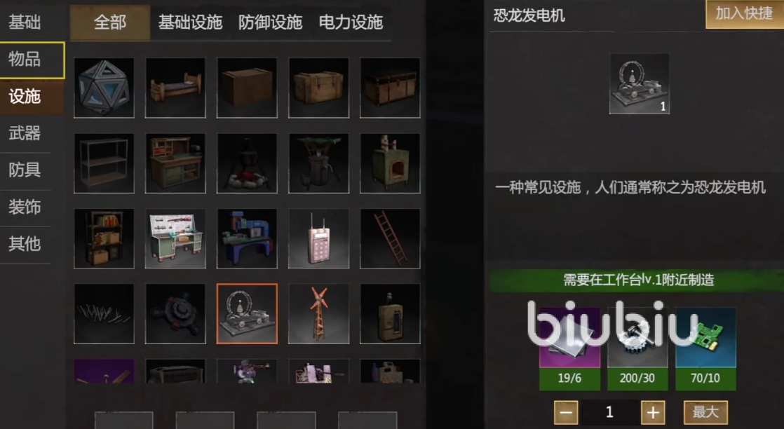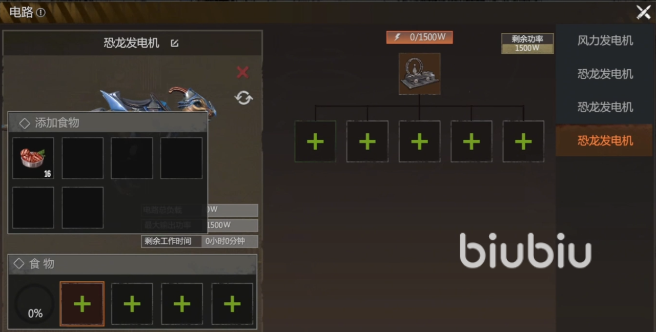 这时电池会随机刷新在这片区域,玩家记得抓紧时间寻找并销毁,完成后再回到发电机的门前,这时就能进入其中拿到发电机了,第二种方法非常独特,就是使用恐龙来进行发电,想要做到我们需要拥有一只恐龙。