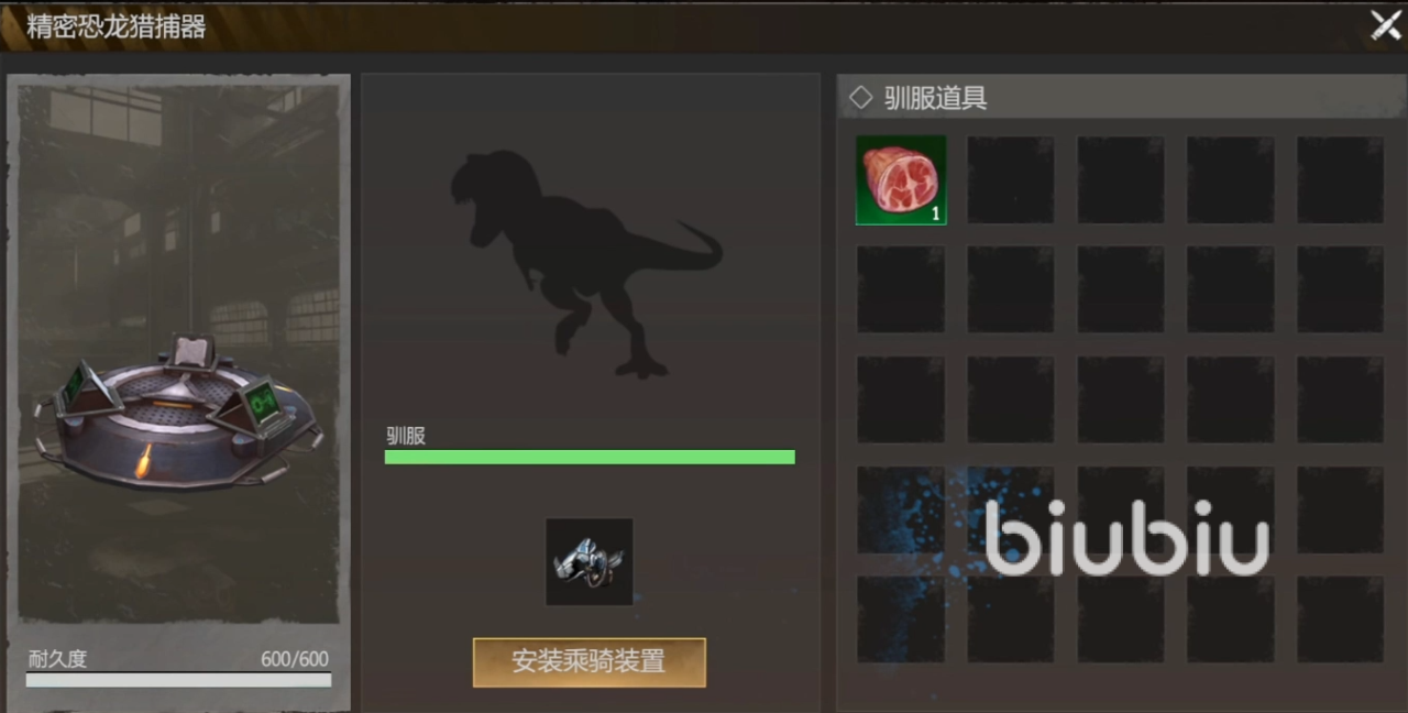 这个时候会弹出驯服的窗口,我们只要将肉给喂给它,最后按照好乘骑装置就算抓捕成功了,后续可以召唤它出来乘骑,如果想要发电的话,一定要记得捕捉副栉龙,只有它才可以进行发电。