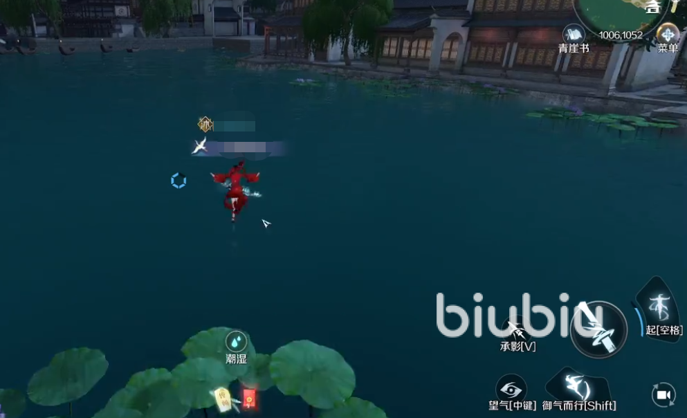 在水面上,先使用飞燕凌波,飘在水上可选择水上漂进行一段滑行,如果想快速通过水面,则需要按疾行,消耗一定的轻功值。