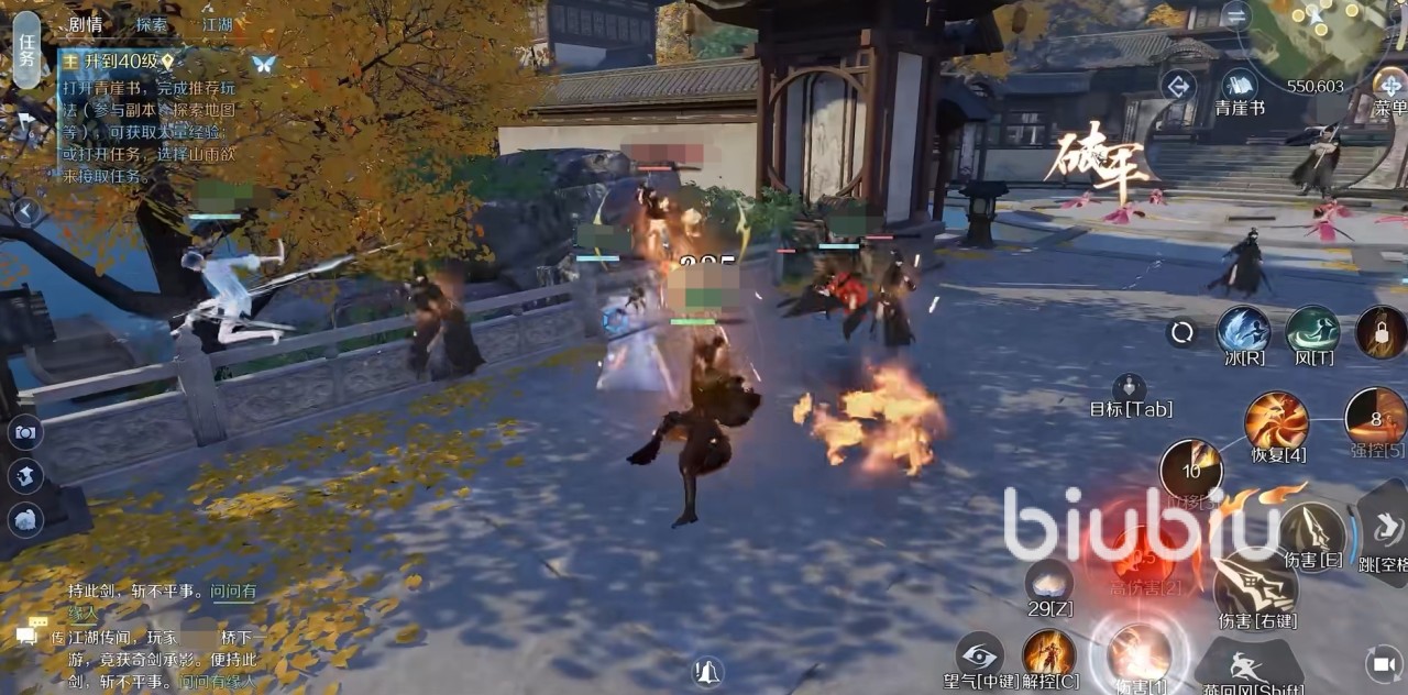 接着,玩家只要不断地向他进攻,打掉他的血就行,等墨先生被打到只剩下百分之三十的血量时,他就会使用“墨染乾坤”,这个时候,小伙伴们只要利用灵活的走位和燕回风的轻功就可以规避掉他的伤害。