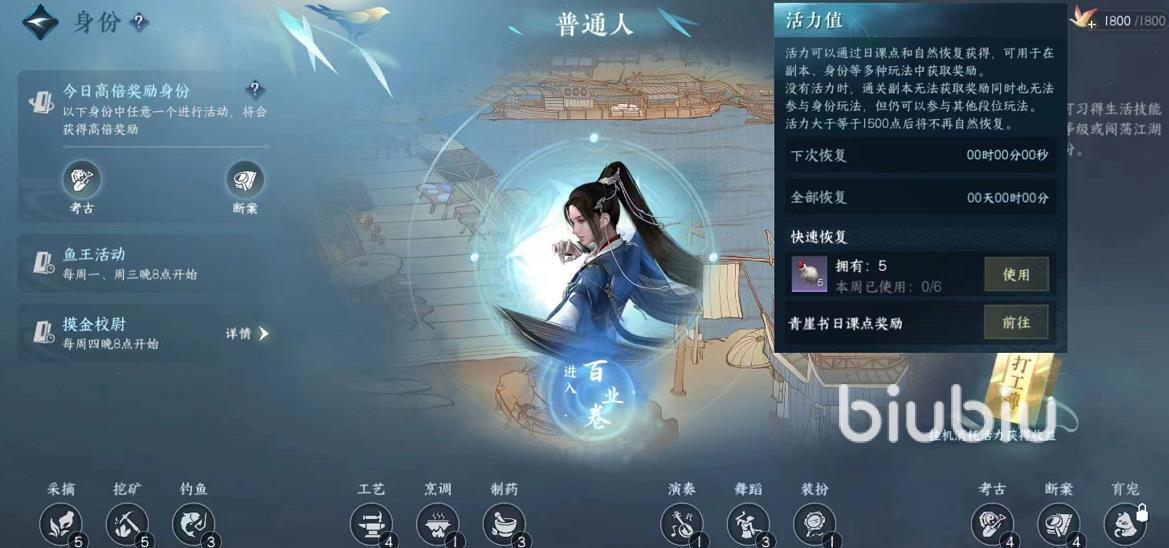目前游戏内活力的恢复方法一共有两种,第一种就是自主恢复,每隔五分钟可以帮助我们恢复一点活力,不过这个恢复方法有一定的缺陷,就是太耗时间了。第二种就是通过使用活力丹的方式恢复活力,这个道具真的是太好用了,玩家们如果使用活力丹的话,可以一下子恢复到60左右的活力值,短时间内能够让我们在游戏挑战中更好地完成更多身份玩法,快速的提升自己的才艺技巧。