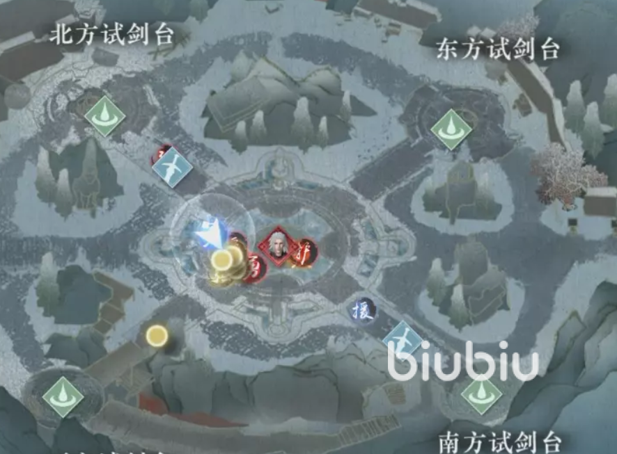 试剑天下这个竞技模式在游戏当中的机制可以概括为,当玩家进入战场之后可以发现双方阵营一共拥有24人,也就是12人对抗12人的模式。在整个战场地图上,玩家分别可以看到4个不同方位的试剑台。试剑台存在的作用就是让阵亡的玩家随机复活。不同阵营的玩家一定会在当前的战场上相遇,只要玩家能够击杀敌方,或者助攻自己的队友击杀敌方,都可以获得相应的战斗分数。