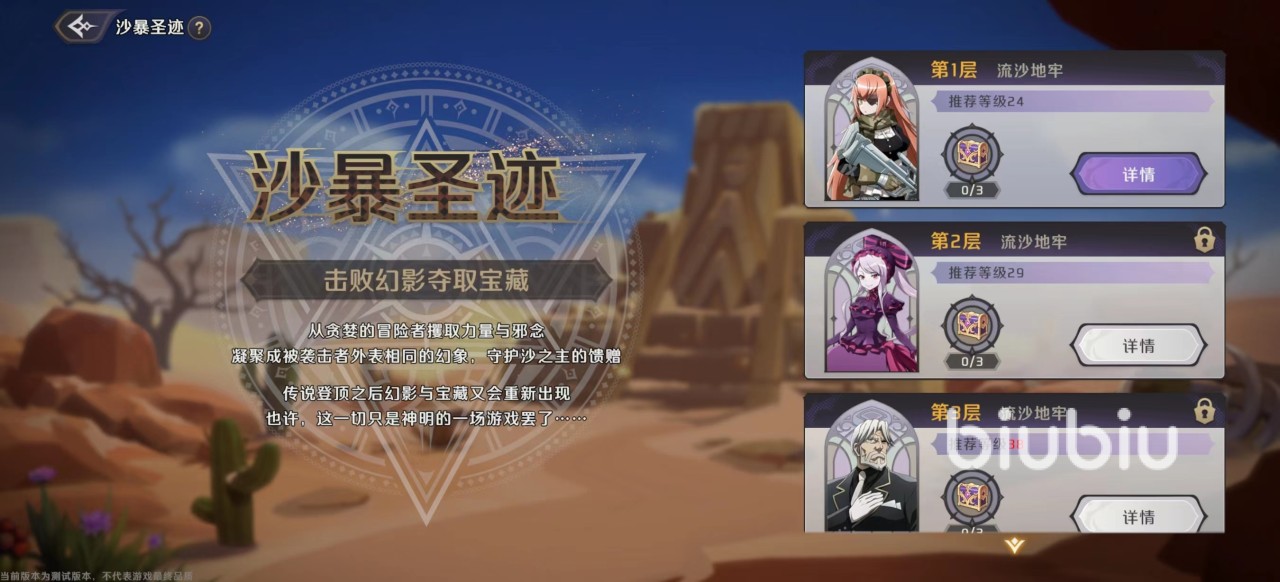 沙暴圣迹游多层组成,因此才称之为爬塔玩法,普通难度通关之后就会解锁下一层,以及同层的困难模式,每一层圣迹中不管是普通还是困难都有若干个幻想挑战,击败所有幻想后再挑战最终boss,胜利后即可通关本层。
