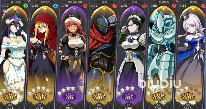 之后剩下的几位除了小迪之外都是法师类型的角色,这三位角色也都是ssr级别的法师,输出都非常爆炸。尤其是安兹,安兹是动漫中的主角,也是游戏目前为止最强的法师,就目前从游戏中的表现来看,伤害方面还没有哪位法师角色比他高的。另外该角色还拥有全游戏目前为止唯一的无敌技能,该技能可以让自身进入段时间的无敌状态,这个无敌技能给到法师身上简直可以说是神技,该技能可以提高法师的生存能力,增加法师在队伍中的容错。