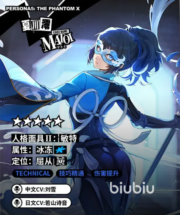 人格面具“敏特”,其实就是薄荷的意思,象征着清新和再生,她拥有新的元素反应,也就是techinal,她的屈从会合榴七有很大的区分,因为佑介为首的冰队是不需要降防的,而澪则有一个从来没有出现过的精通技巧。