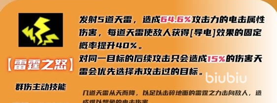新井素羽晴光的主要输出技能是雷霆之怒,它可以造成五段伤害。这就意味着她既有单能力又有群体伤害,还会对攻击单位造成导电异常状态。但如果只攻击单一目标,只会造成百分之15的伤害,建议用这个技能来给敌人触发导电效果。