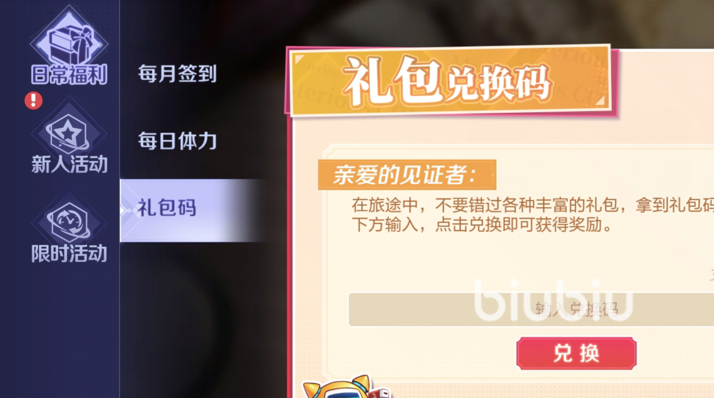 第二步:点击活动进入后,选择“日常福利”,就可以看到“礼包码”。