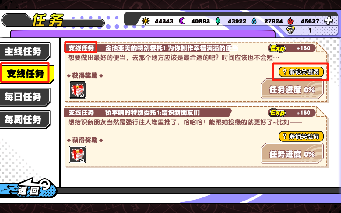 (3)任务说明:条件确实比较有限,大家也只能一点一点试。目前可能性比较高的地方是《图书馆》《值日》《模拟特训》。