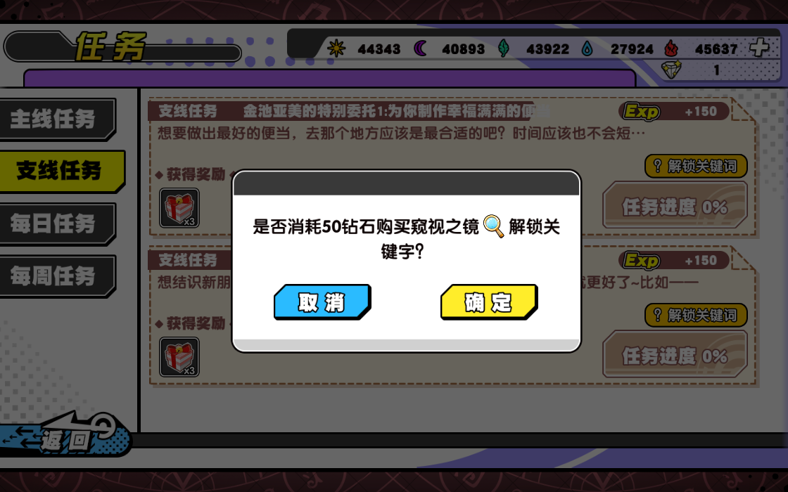 (3)解锁事件:解锁角色的支线任务是可以带来很多好处的,不仅可以获得可观的游戏资源,还能获得角色的好感度,并且解锁角色特殊剧情。