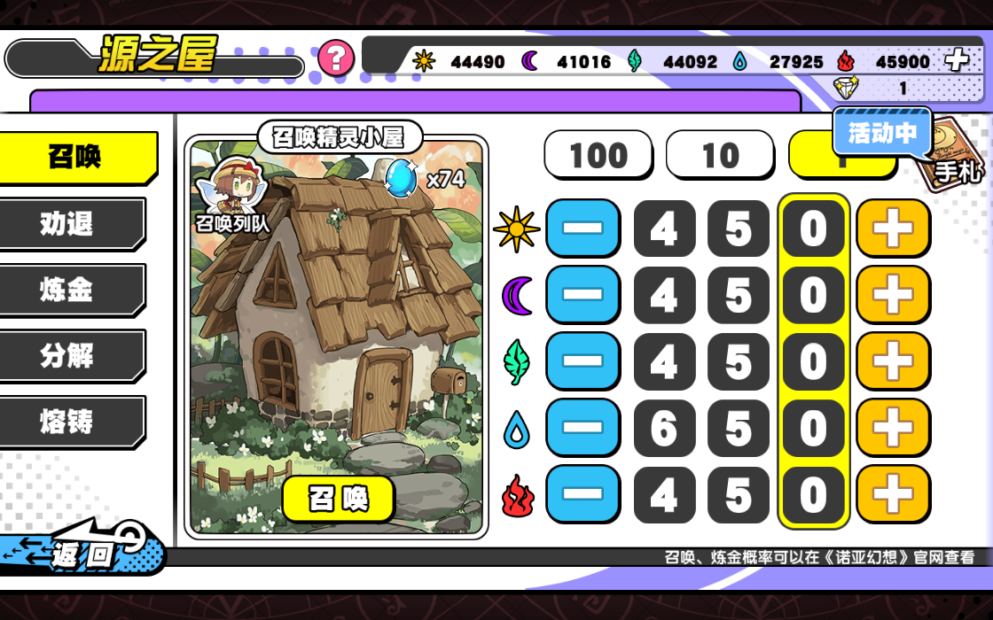 (1)源之屋:源之屋相当于抽卡的一个机制,虽然有抽卡的公司,但是作用并不大就像是海底捞针一样,获得角色完全是随机的,低级角色还好说,高举角色不推荐在源之屋获得。