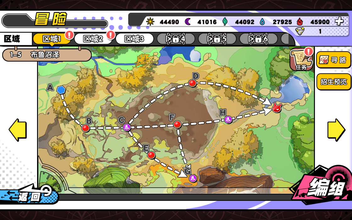 2、路线选择:诺言幻想中的地图都是油据点组成了,因此在过关路线上选择比较复杂,尽量选择可打BOSS的路线,这样既能刷经验还能掉落高级角色。