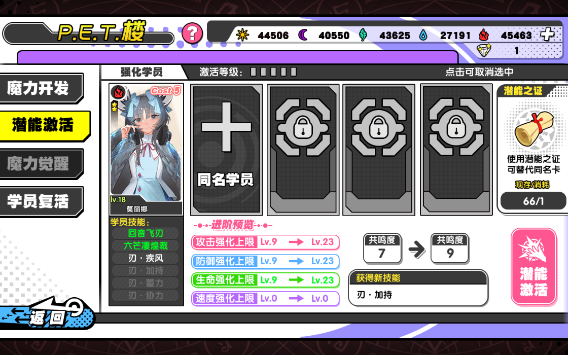 2、劝退:劝退高星的学员可以获得潜能之证。低星的学员比较建议在P.ET.楼作为魔力开发的素材。