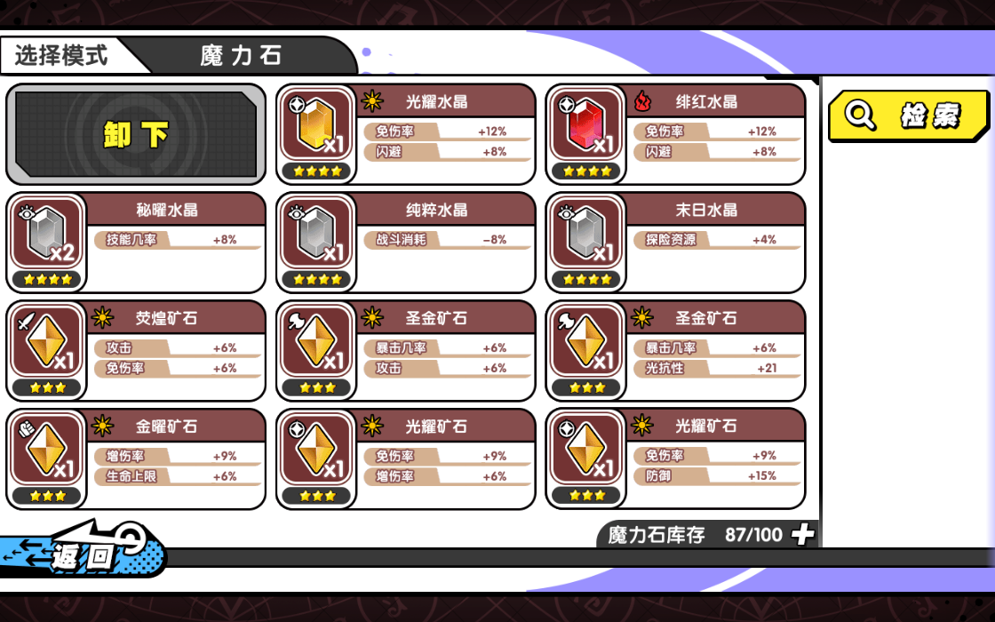 (2)魔力共鸣石:一共有五种属性的魔力共鸣石,角色的技能是根据魔力共鸣石组合而来的,技能的搭配要看大家自己对游戏的理解。