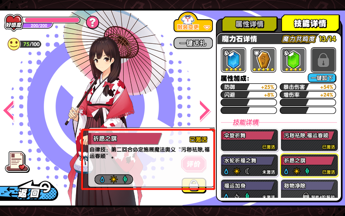 1、祈愿之旗:自律技:第二回合必定施展魔法奥义"污秽祛除,福运眷顾”。