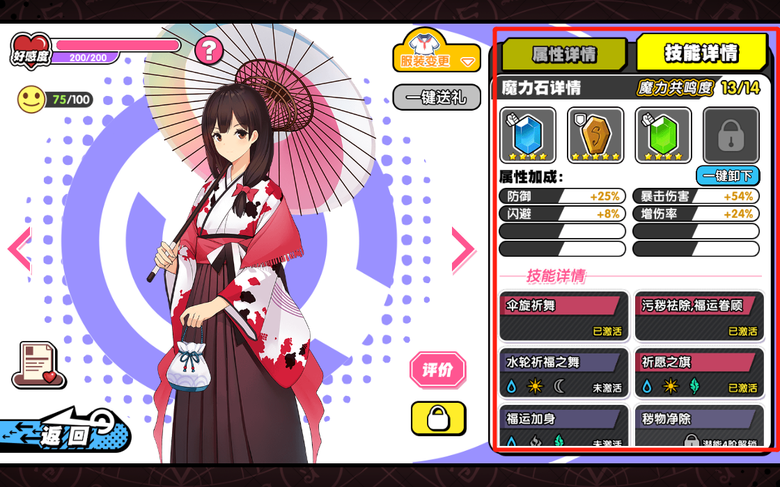 2、魔力共鸣度:虽然三个魔力共鸣石技能就能解锁技能,但还是要提升一下。