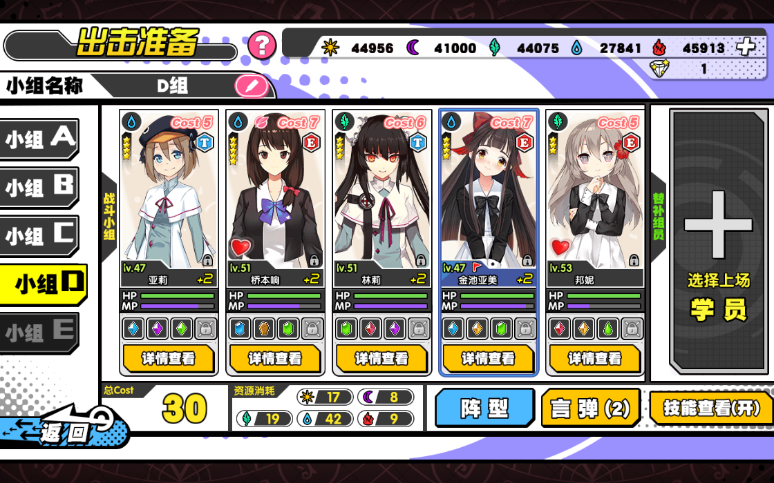 (4)COST限制:不同关卡的Cost要求不同,小组Cos总和不能超过关卡限定。