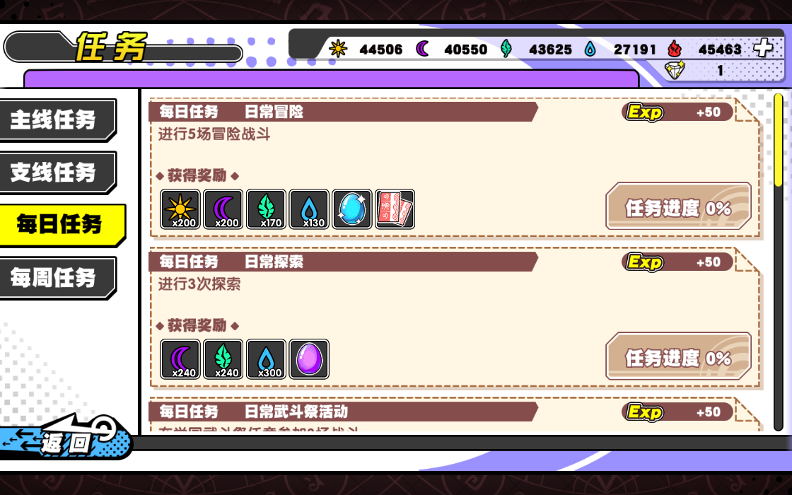 3、每日任务:现在没有卡牌游戏都有每日任务,无论你是氪金还是不氪金,每日任务都是需要完成的,游戏中大多数资源都能从每日任务中获取。