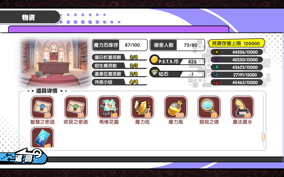 (1)源之屋:源之屋是学校的实验室,分为学员召唤/劝退以及魔力石养2成两个重要功能。